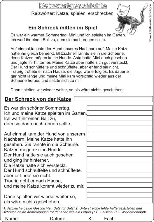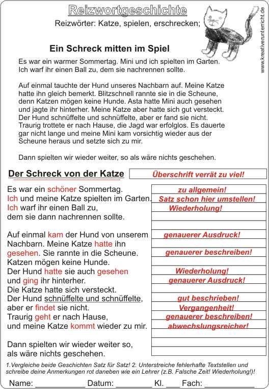 Zwei Reizwortgeschichten vergleichen und selbst Fehler finden - Arbeitsblatt und Lösungsfolie