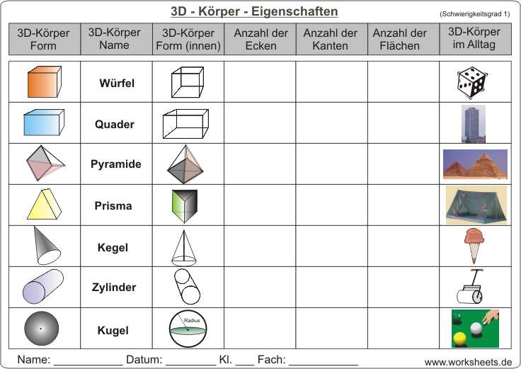 Würfel, Quader, Pyramide, Prisma, Kegel, Zylinder, Kufgel;