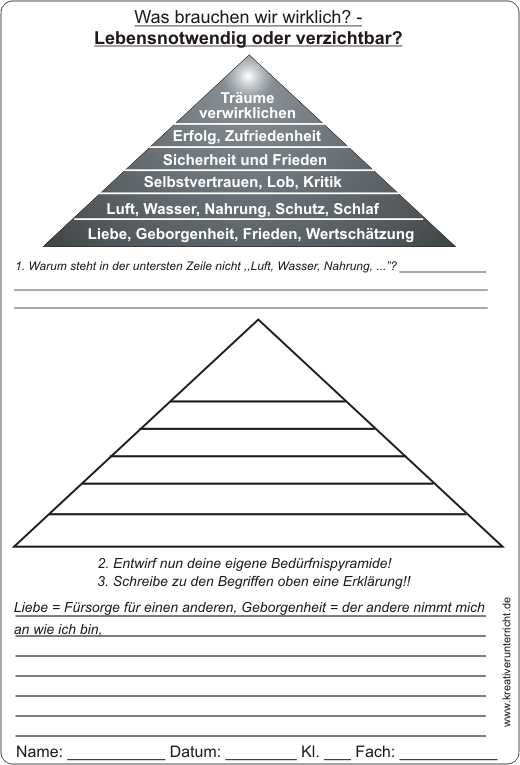 Bedürfnispyramide mit dem Fundament: Liebe, Geborgenheit, Frieden, Wertschäzung - fehlen diese elementaren Grundbedürfnisse, tritt psychischer Hospitalismus (Kaspar-Hauser-Syndrom) ein.
