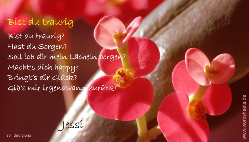 Bist du traurig? Ein Gedicht von Jessi als Postkarte zum kostenlosen Download