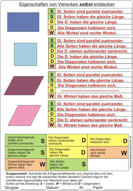 Schüler entdecken die Eigenschaften von Vierecken selbst.