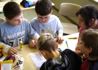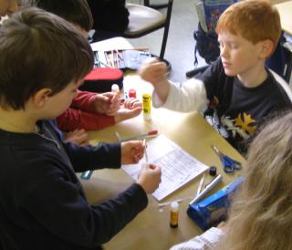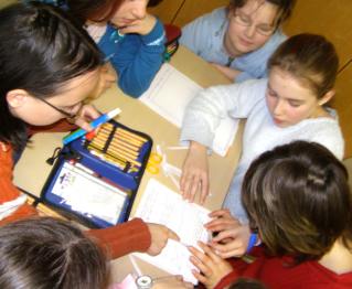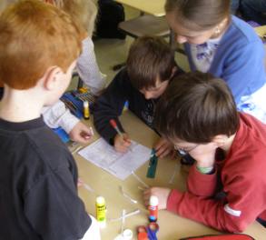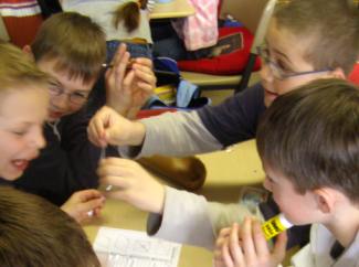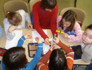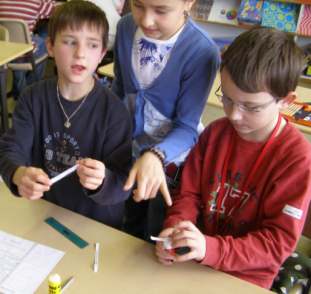 28 Schüler in 5 Gruppen beim selbst entdeckenden Lernen