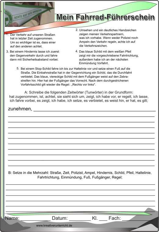 Mein Fahrrad-Führerschein - Text zur Unterstützung der praktischen Prüfung