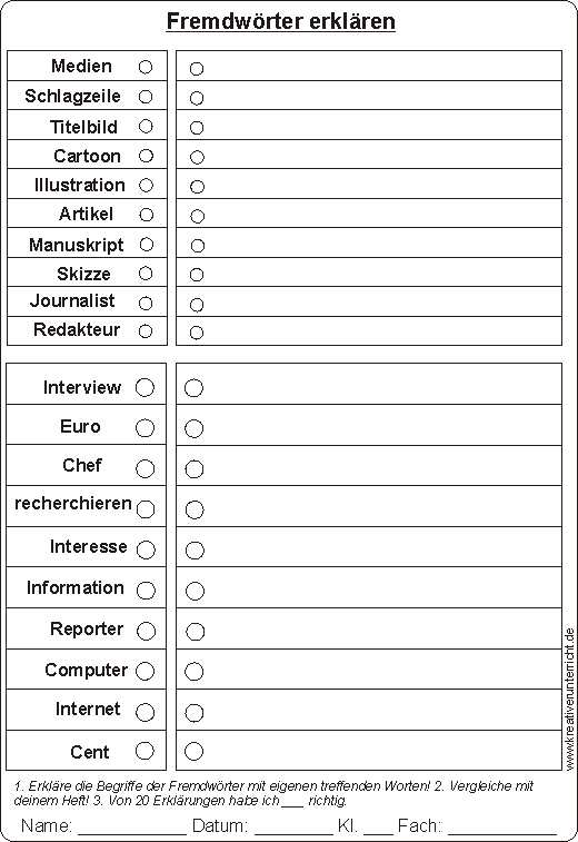 Fremdwörter erklären Zuordnen Puzzle
