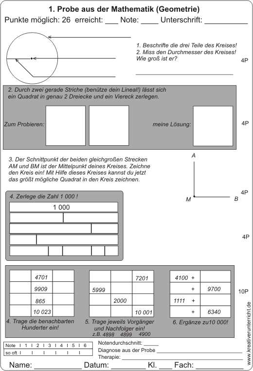 Geometrie Probe Klasse 3: Längen, Flächen, Körper und deren Eigenschaften