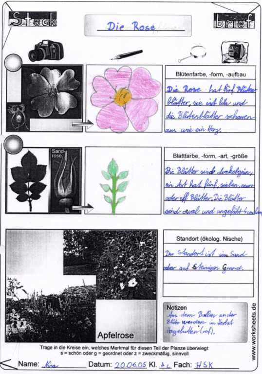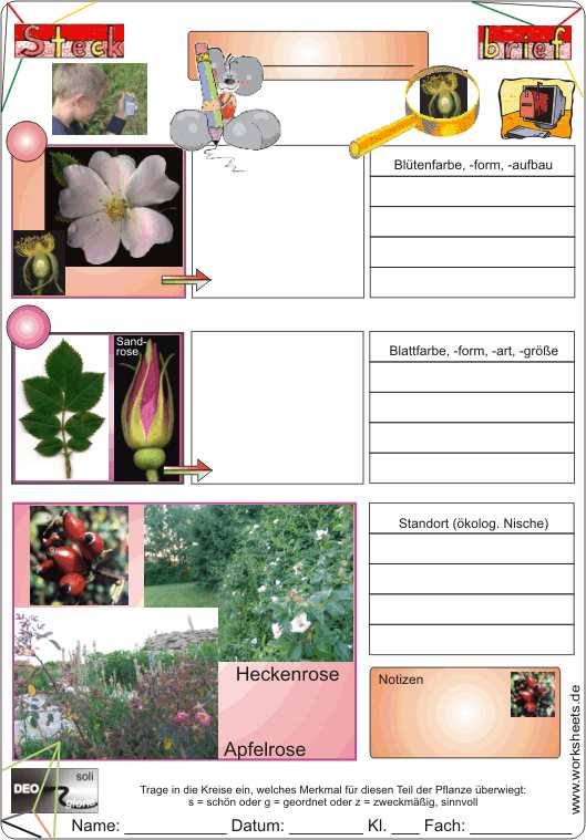 Steckbrief - Heckenrose (Apfelrose, Sandrose) Arbeitsblatt