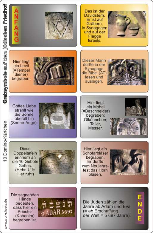 Das DOMINO (Lösung!) erklärt die Symbole auf den jüdischen Grabsteinen.
