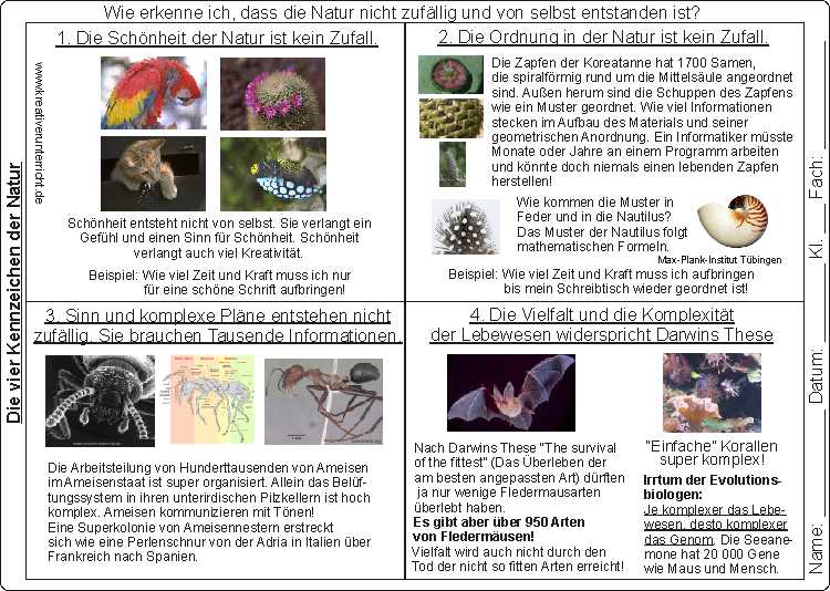 Kriterien und Kennzeichen eines kreativen Designs in der Natur sind: