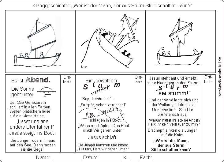 Klanggeschichte  Sturmstillung: ,,Wer ist der Mann, der aus Sturm Stille schaffen kann?” Arbeitsblatt