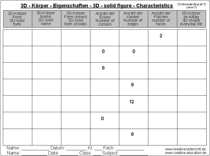 3D - Körper - Eigenschaften - 3D - solid figure - Characteristics