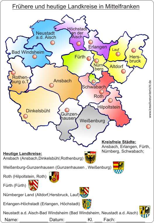 Landkreise in Mittelfranken - früher und heute mit den Kreisfreien Städten