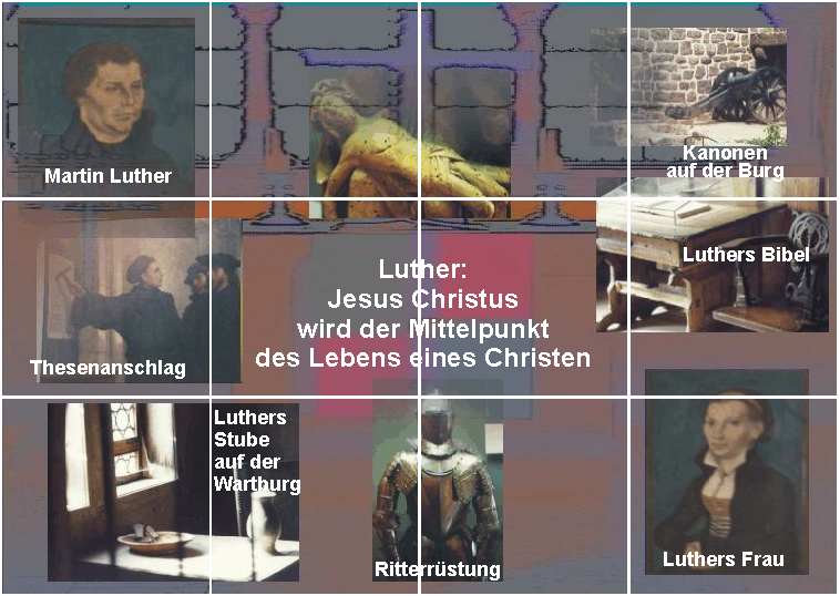 Martin Luther auf der Wartburg - Vier einfache Puzzles - auch für einen Lernzirkel geeignet - werden vom Lehrer oder von den Schülern zerschnitten und dann wieder von Gruppen oder in Partnerarbeit zusammengesetzt.