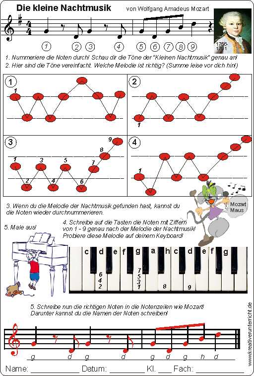 Mozart for Kids - Die kleine Nachtmusik mit Noten - notes - Erkennen der Struktur der Melodie, nachempfinden des Rhythmuses und kennenlernen der Notenschreibweise.