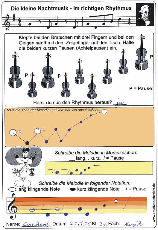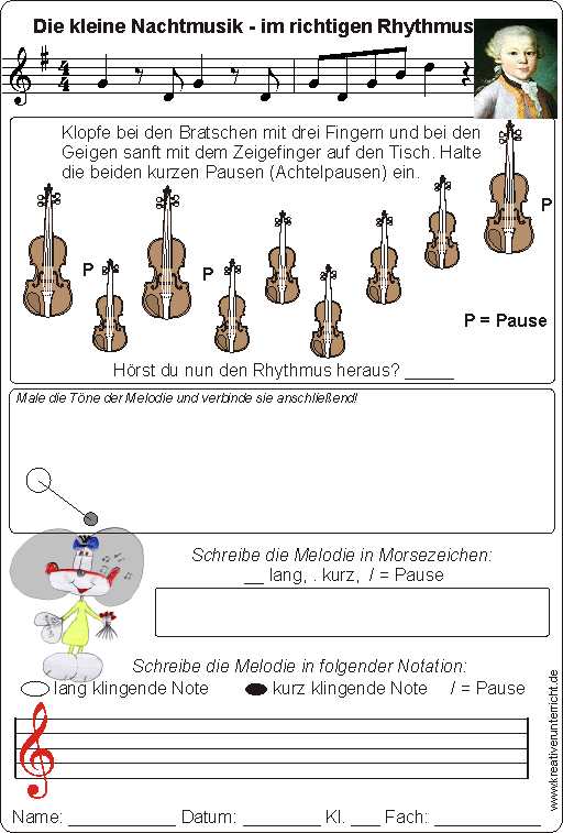 Mozart for Kids - Die kleine Nachtmusik mit Rhythmus - Rhythm - Erkennen der Struktur des Rhythmuses nachempfinden des Rhythmuses und kennenlernen einfacher und anschaulicher  Schreibweisen.