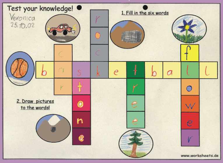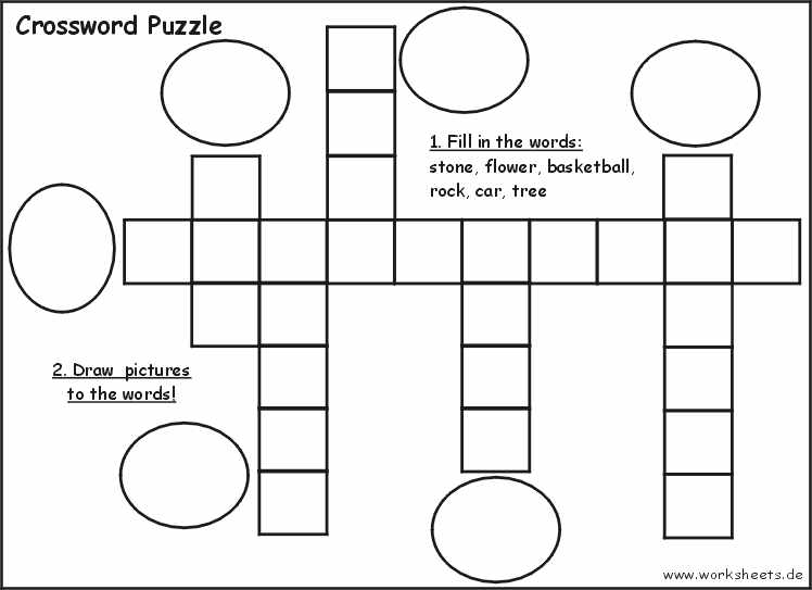 Crossword Puzzle: stone, flower, basketball, rock, car, tree;