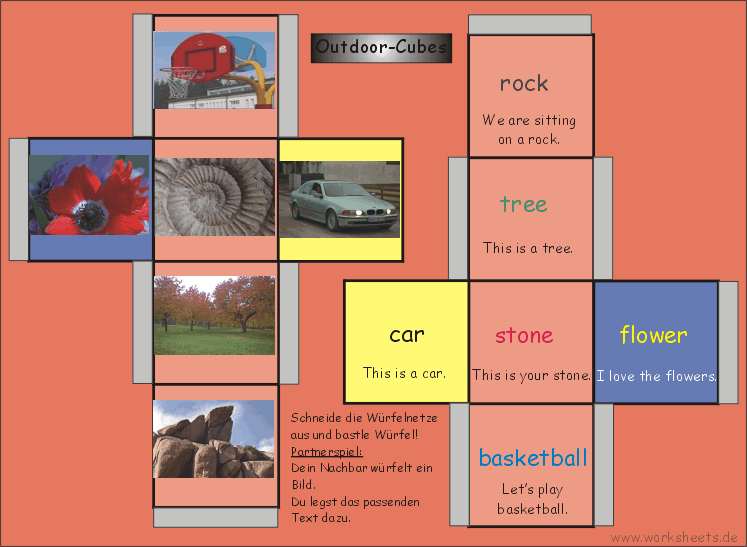 Hier befinden sich Partnerspiele und Kreuzworträtsel zu den Small Action Worksheets (SAW). Die fertigen Würfel kommen dann in unsere “Lernwanne” (siehe “Neue Lernmethode”) und so kann das Partnerspiel in den Freiarbeitsphasen immer wieder einmal den Wortschatz sichern.