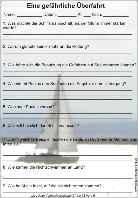 Paulus und Mannschafft erleiden Schiffbruch vor der Insel Malta. Arbeitsblatt: Fragen zum Text