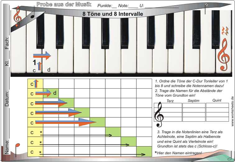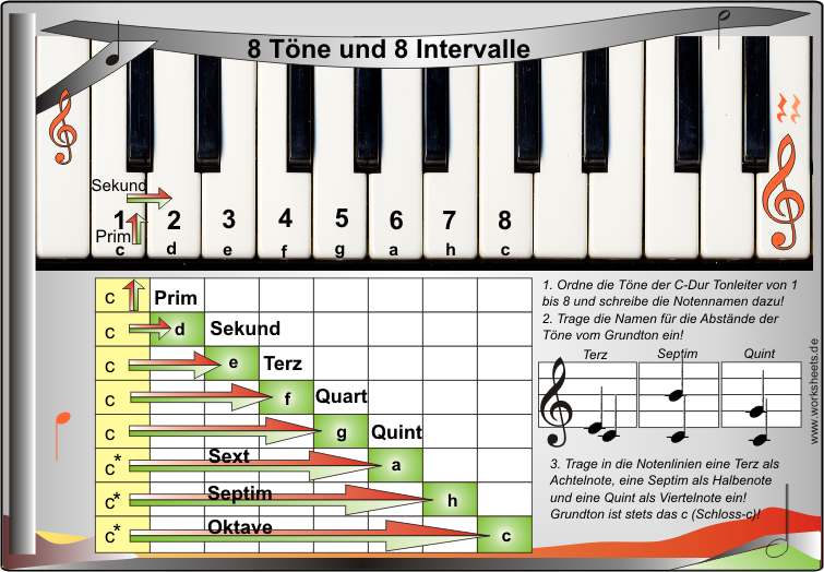 8 Töne und 8 Intervalle - 8 sounds (notes) 8 intervals: Prim, Sekund, Terz, Quart, Quint, Sext, Septime und Oktave - Probe aus der Musik - interval test