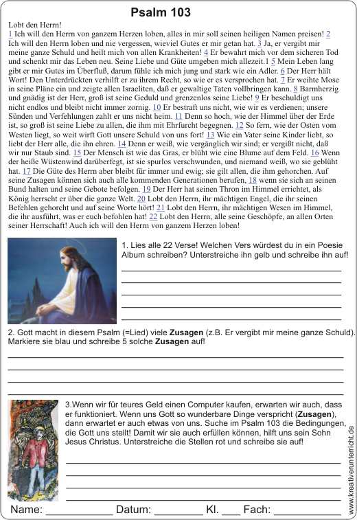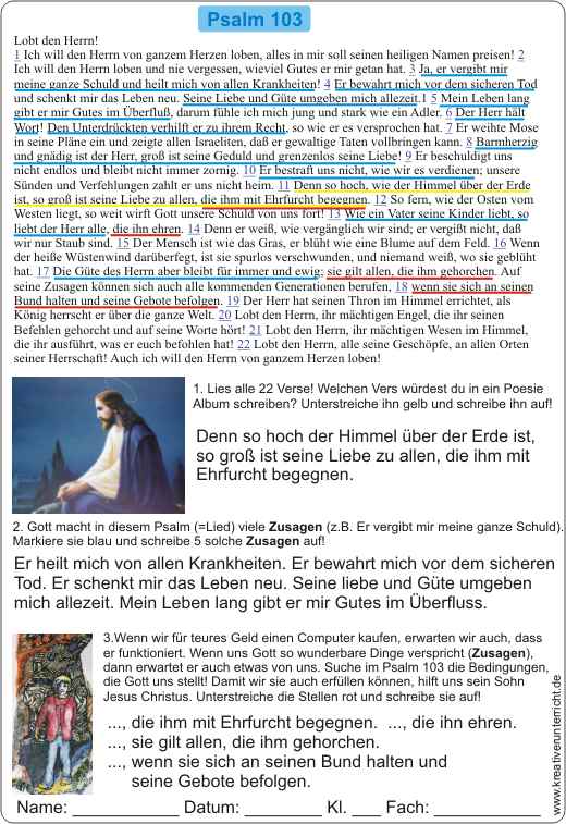 Psalm 103 Zusagen und Bedingungen Gottes - Spruch fürs Poesie Album