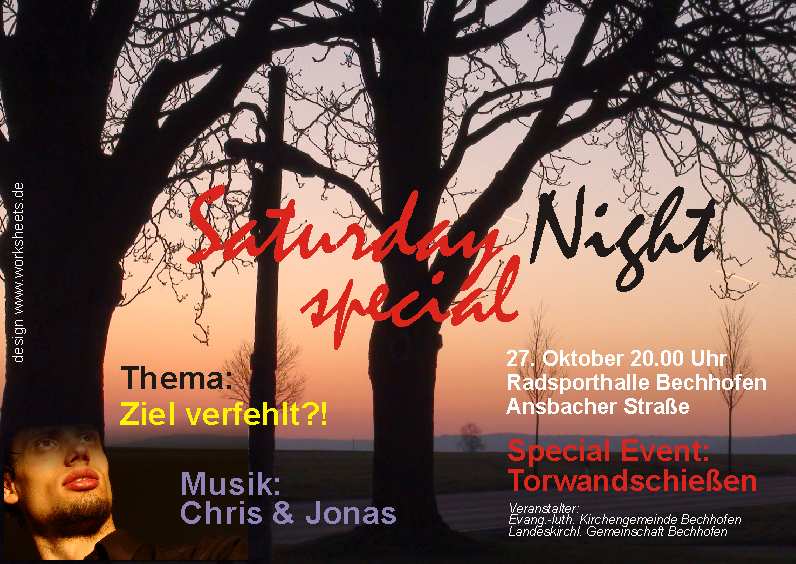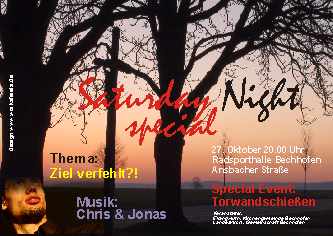 Saturday Night special Gottesdienst einmal anders - in der Radsporthalle 91572 Bechhofen an der Heide am 27. Oktober 2012 um 20.00 Uhr