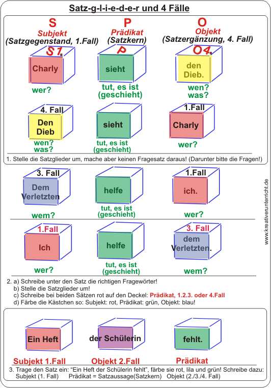 Sprachlehre - Satzglieder (Subjekt,Prädikat, Objekt) mit den 4 Fällen