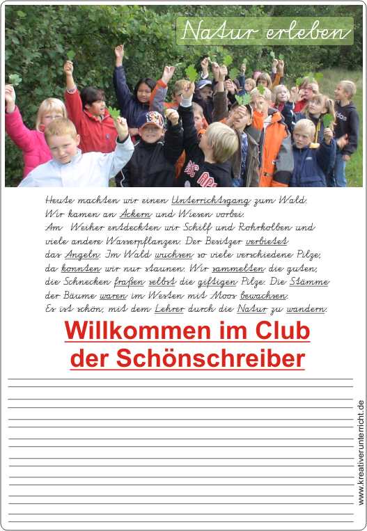 Da über 50% der Klasse so schlecht schreibt, dass sich das Schriftbild nicht zuverlässig einprägen kann, muss der lehrer zunächst an der Schrift arbeiten, bevor er kreative Übungen anbieten kann.