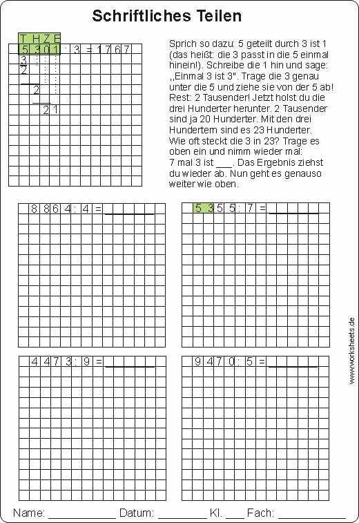 Einführung in das schriftliche Teilen - Arbeitsblatt