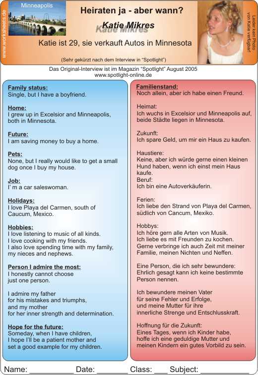 Eine Interview mit Katie Mikres aus Minnesota, entommen aus der Zeitschrift “Spotlight”
