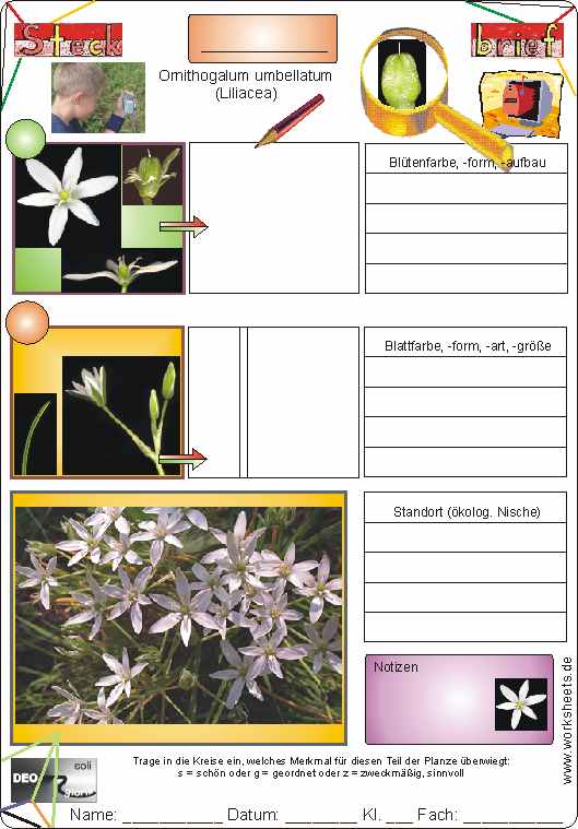 Steckbrief: Milchstern - mit Blüte, Blatt und ökologischer Nische (sie wächst am Rand von Wegen und  Feldern).