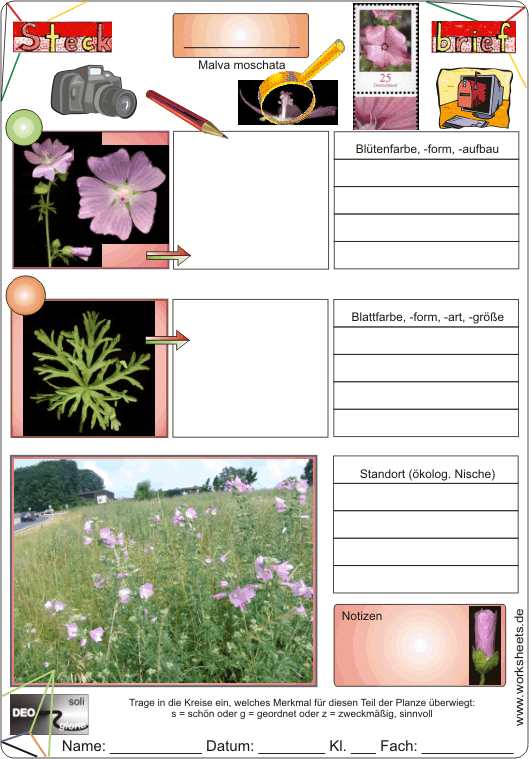 Steckbrief: Moschus-Malve mit Blüte, Blatt und ökologischer Nische (sie wächst am Rand von Wegen, Sraßen und Feldern).