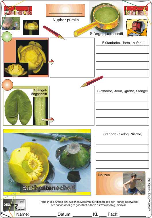 Steckbrief: Zwerg-Teichrose Nuphar pumila mit Blüte, Blatt und ökologischer Nische (sie wächst in Flüssen und Seen).