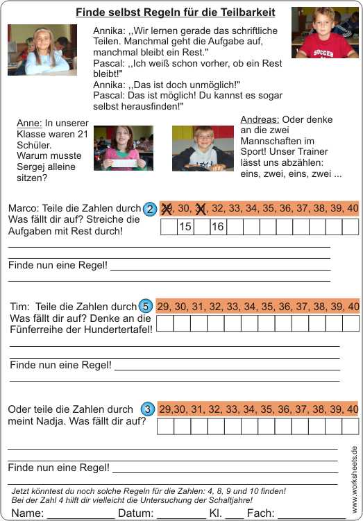 Beispiele aus der Unterrichtsstunde in Mathematik der Klasse 4a : Kreatives Problemlösen durch selbstentdeckendes Suchen und Finden von Teilbarkeitsregeln