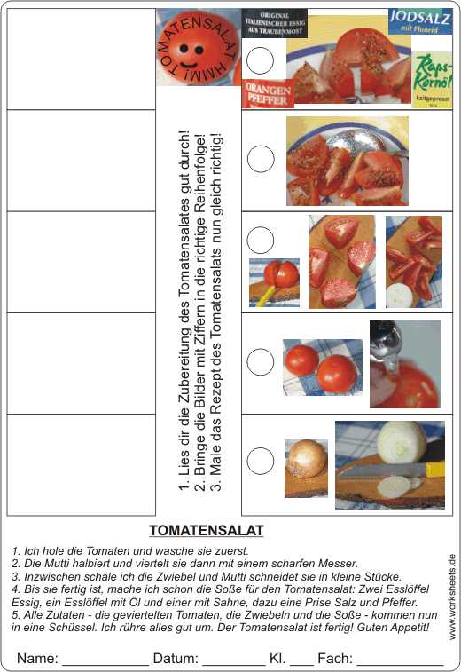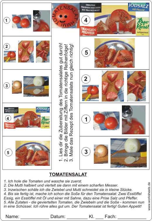 Tomatensalat - Wie mache ich ihn ? Beschreibung eines Rezeptes mit Text und Bild Zuordnung und Reihenfolge