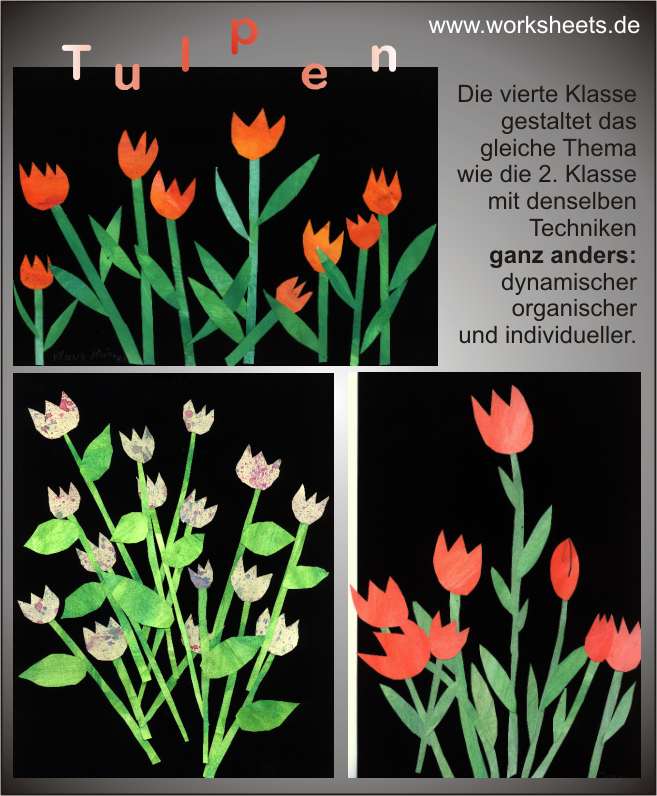 Bildanalyse und Bildbetrachtung: Tulpen im Frühling Arbeitsblatt und mögliche Lösung als Farbfolie für den Lehrer