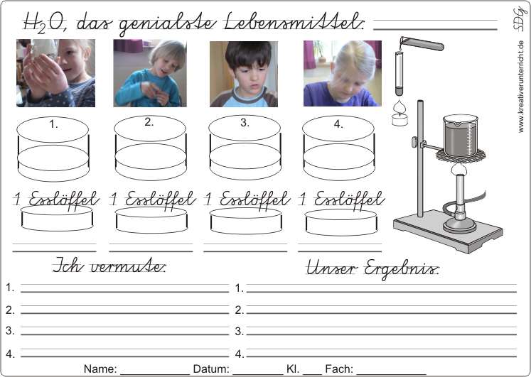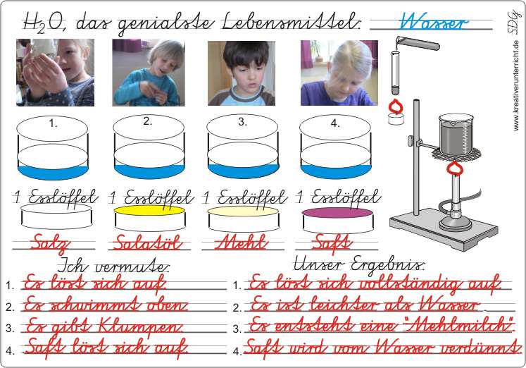 Wasser - H2O - das genialste Lebensmittel - Schüler-Experimente mit Vermutungen und Ergebnissen.