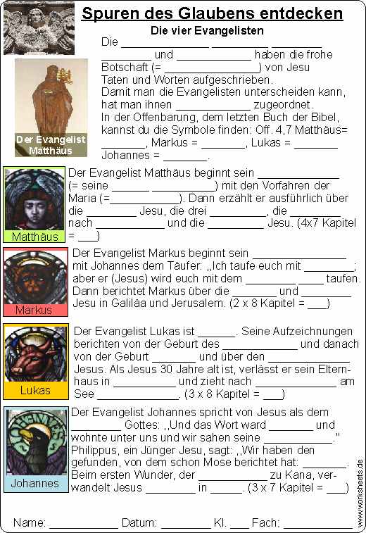 Die vier Evangelisten: Matthäus, Markus, Lukas und Johannes und ihre Symbole - Spuren des Glaubens entdecken.